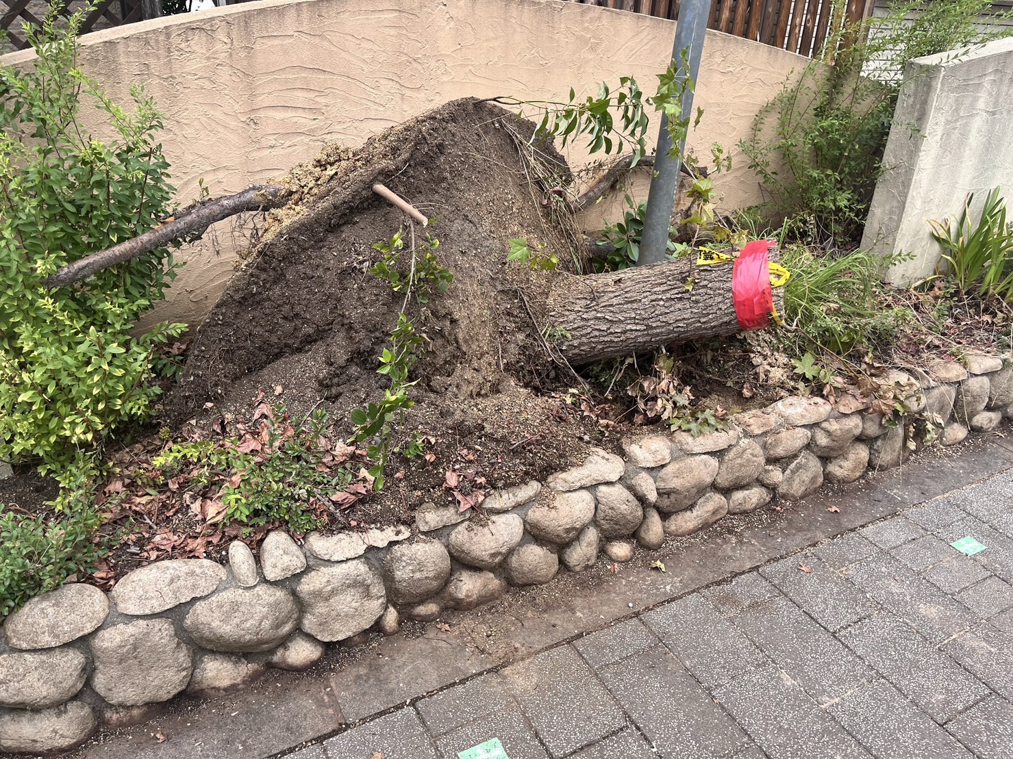 今回は、{{prefecture}} {{city}} にて他社様で残されていた切り株の抜根作業を行いました!